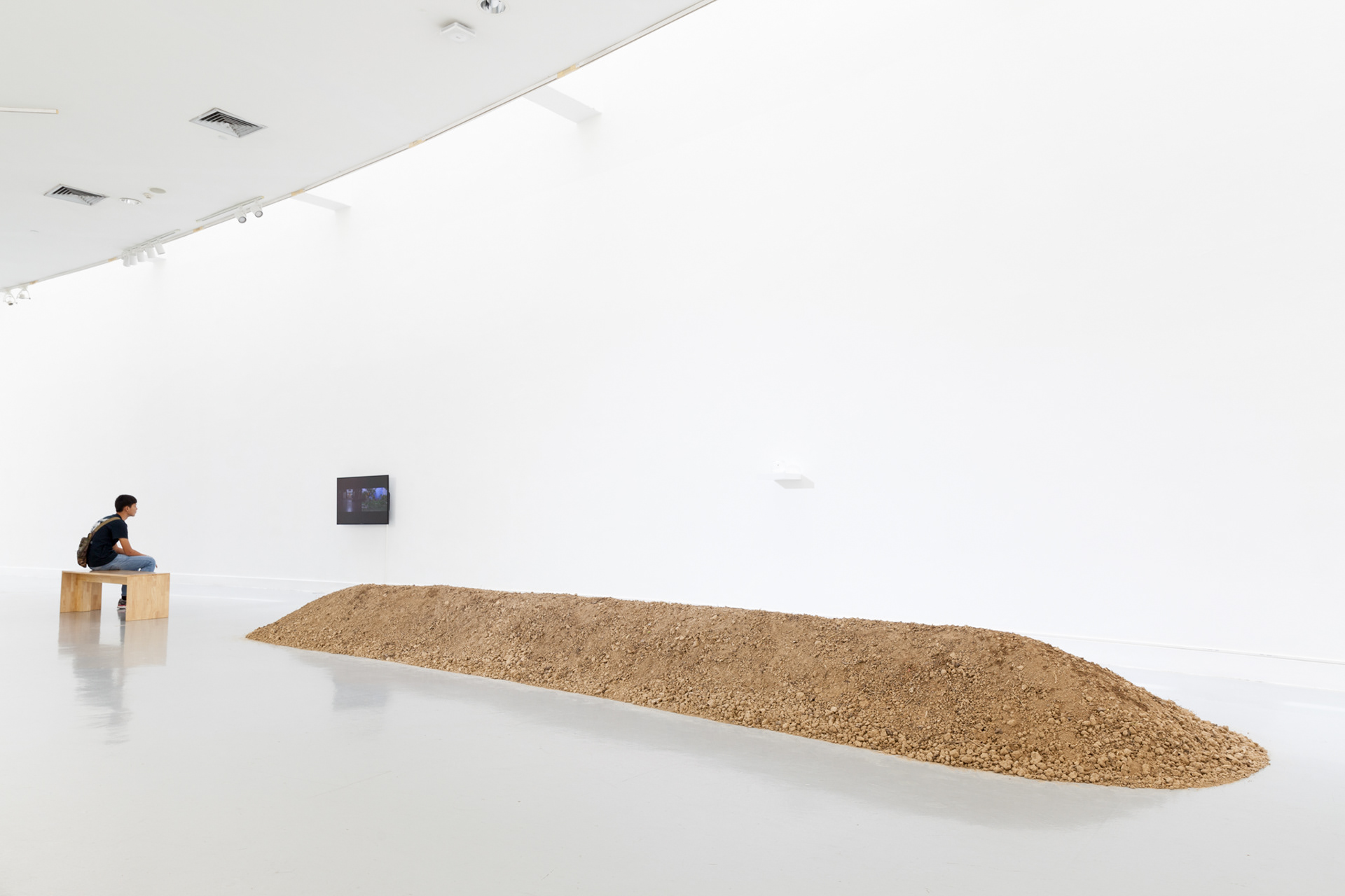 Screenshot of VDO, It's a two-part video. Talking about the mindfulness meditation process at Pa Pha Daen Temple, Chiang Mai Province, which was the main inspiration for wanting to study this subject. Presented together with the process of bringing 1.5 tons of soil from a house in Phayao Province. Go on display at an art gallery who received help from a lovely mother